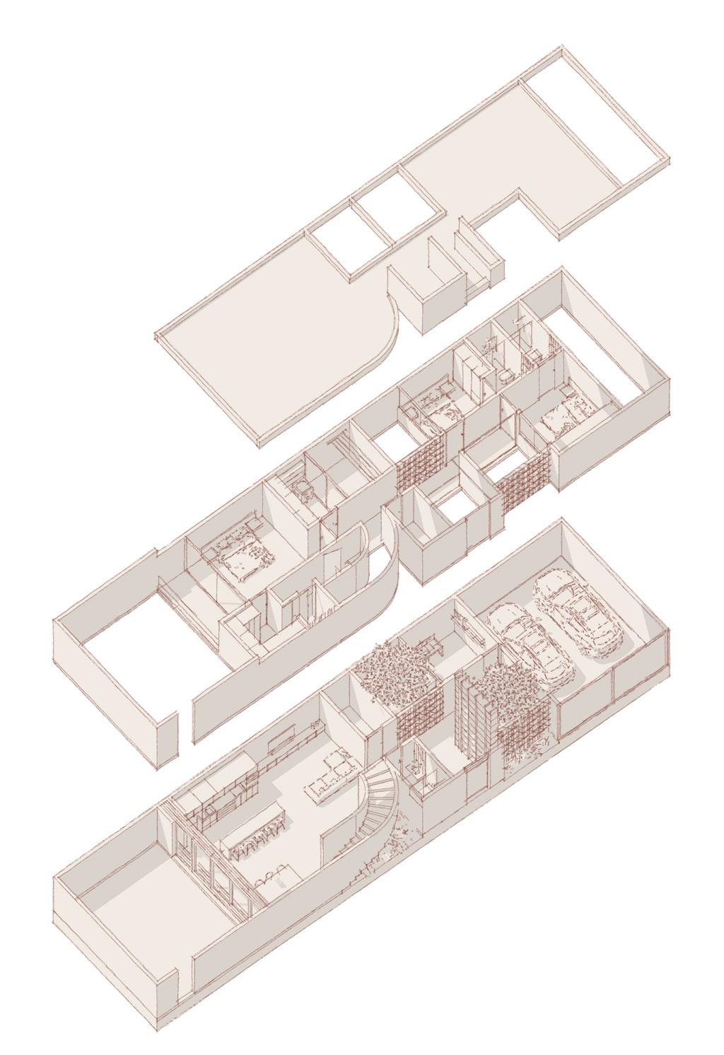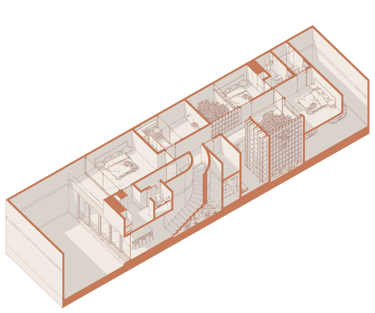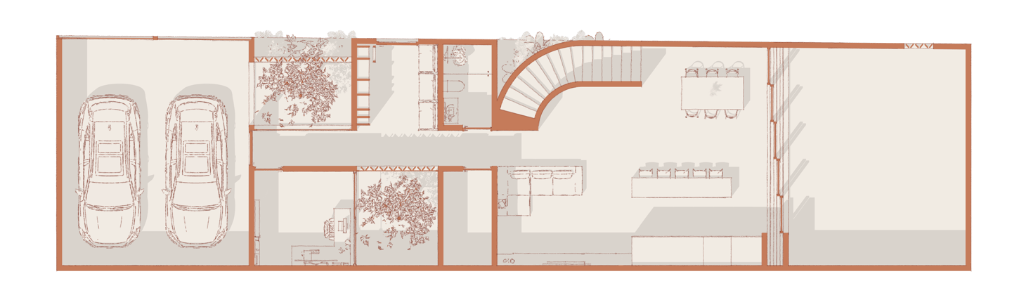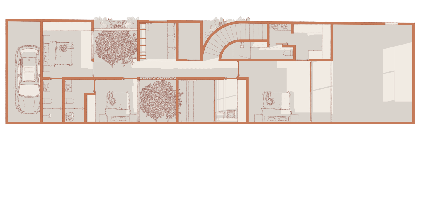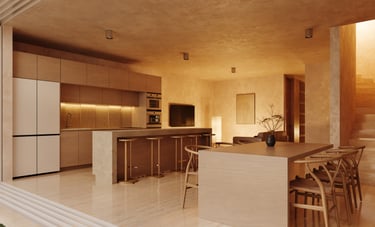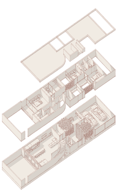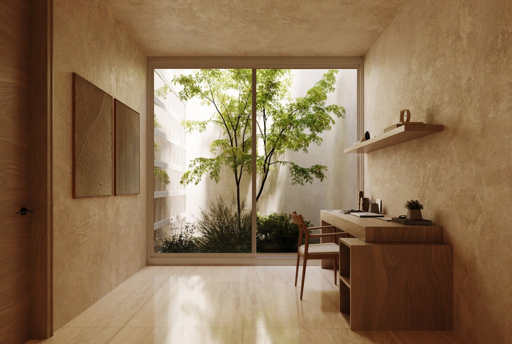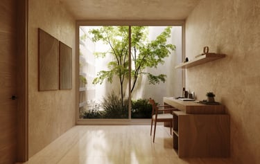 Por dentro, el proyecto se transforma, dejándonos ver, acabados y sensaciones completamente distintos, buscando las mejores vistas hacia espacios internos del proyecto.